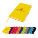 A5 Casebound Notebook with an elastic closure made to order in the UK finished in soft touch Belluno PU with a real leather look and feel Belluno is available in a choice of 22 colours each with a unique colour change when embossed, making your branding distinctive and accurate even on fine detail