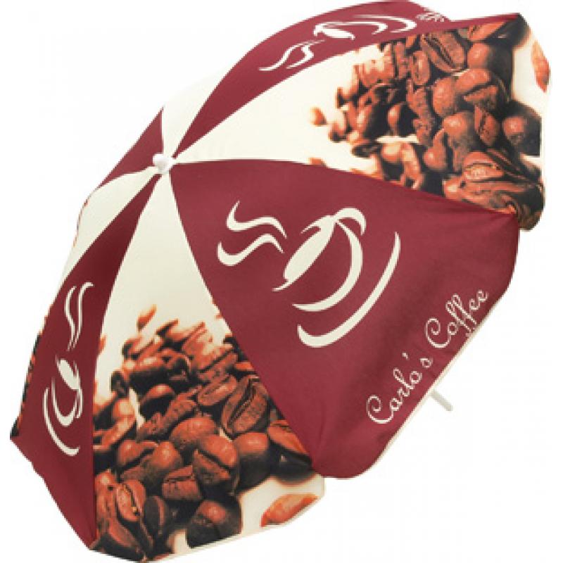 White wind proof parasol. Fully customisable on small quantity production runs. Tilting canopy and telescopic extending pole.